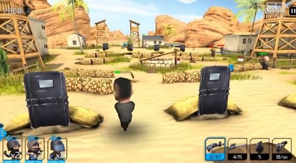 游戏主打Q版画面,并以3D风格进行制作,人设均以大头的Q版形象示人,玩家需要组建一支军队来参加各种战役,游戏提供了各种不同职业的兵种以及武器和道具,包括狙击手、突击队员等等,除了常规的武器之外还能派遣武装直升飞机等大型的交通工具加入战场之中,同时还有支持玩家联网对战的PVP模式。