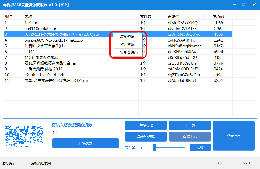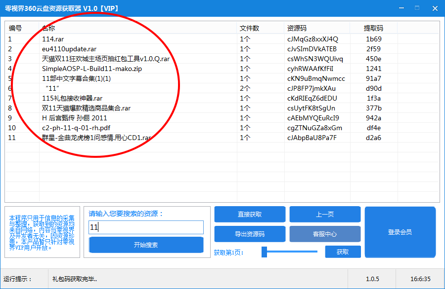这款软件基于360云盘,它可以帮助你快速获取360云盘资源,支持批量导出礼包码,获取指定页的礼包码,另外还支持支持指定资源的自定义搜索,是一款强大的360云盘资源获取器,欢迎有需要的朋友下载使用!