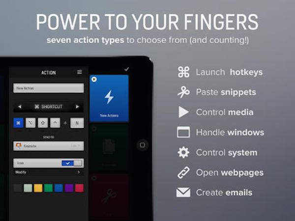 Actions for mac是一款支持 Mac 与 Windows 系统的无线遥控应用 (远程控制软件),Actions for mac这款软件上架以来得到了不少好评!如果你希望用 iPad 远程遥控你的电脑做各种操作,这个软件应该会是你喜欢的类型。在使用之前,你需要在 Mac 或 Windows 上安装其免费的服务器应用,并让 iPad 通过 WiFi无线连接至自己的电脑(iPad和电脑须在同一WiFi网络内)——只需连接一次,Actions 就能在之后每次运行时自动重新连接至相应的电脑了。