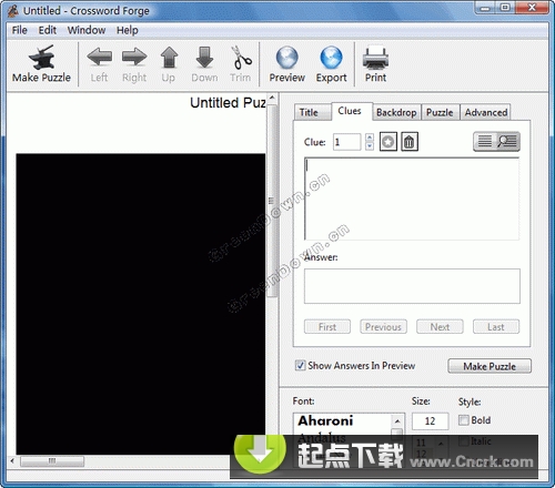Crossword Forge V5.5.5 英文绿色免费版 Crossword Forge 是一款简单的填字游戏和查词游戏制作工具。只要简单的输入提示和答案组合,Crossword Forge 就会自动生成相应的游戏。主要特性:1.可使用图片或纯色作背景;2.四种图片布置方式(居中、平铺、拉伸和缩放);3.可对角或逆序排列单词,使游戏更具挑战性;4.可创建大、小型谜题;5.词库;6.可自动缩小字格一适应页面;7.可打印;8.可导入/导出为文本文件;9.可制作多种语言的填字游戏(英、日、法、德、意、西班牙等等)