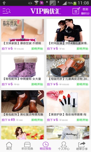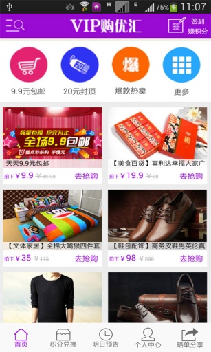 每天10点VIP特惠特价低至6.6元包邮!并有每日精品以下优惠折扣栏目:9.9元/19.9元/29.9包邮/3折-5折免邮折扣等。