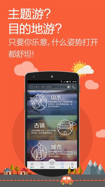 精心设计不同主题的自驾游;规划更简洁明快的界面,不只给你视觉的惊艳,更给你带来阅读的SPA;
