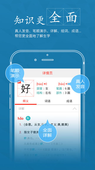 快快查字典lol皮肤版字库内容详尽、无广告、支持离线、排版最精美的掌上汉语字典之一。包含常用字7千多个、1万多个的生字、2万多个国际(GBK)汉字及更多异形字和生僻字。涵盖组词、成语、词典、近义词、反义词,以及百度搜索等功能。深受用户喜欢,是老师、家长和学生的良师益友,学习考试的必备神器。快快查字典lol皮肤版支持WIFI状态自动下载更新离线包的学生必备汉语字典;完全免费,无需登录,绝对不加任何广告和插件;支持离线,随时随地可使用,不受网络限制;乐园分享传播,让更多的朋友知道你有多强。