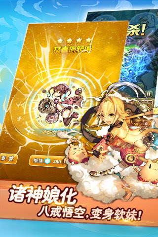 2、激爽弹射 拖曳穿透,热血竞技! 诸神娘化 八戒悟空,变身软妹!