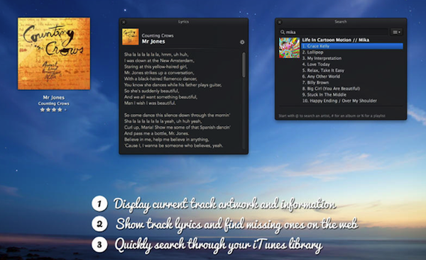 TunesArt 可以让您的音乐体验更加完美,这套免费软件补足了 iTunes 缺少的一些部份,例如iTunes封面显示、乐曲转换通知、快速搜索、Last.fm 支持、歌词显示等等,让您一整天都捨不得将电脑上的音乐关掉!