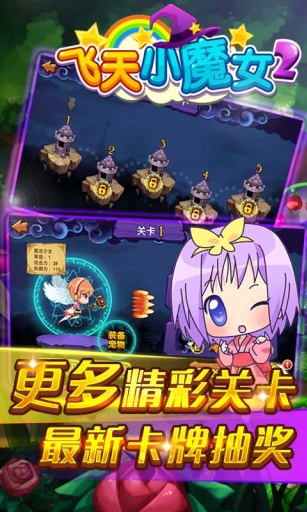 飞天小魔女2下载游戏一款魔幻题材的射击类游戏,这款游戏并不是像CS之类的大型射击游戏,而是一款萌萌的,将养成与射击相结合的游戏,玩家在游戏中不仅可以自己加入到战斗中去,还可以根据自己的喜好来培养各种类型的宠物,让它们帮助你更快速地将敌人消灭。