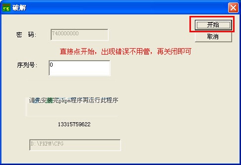 第三步:再点破解2010确定,无序列号继续点击,错误不用管,点一次即可关闭。