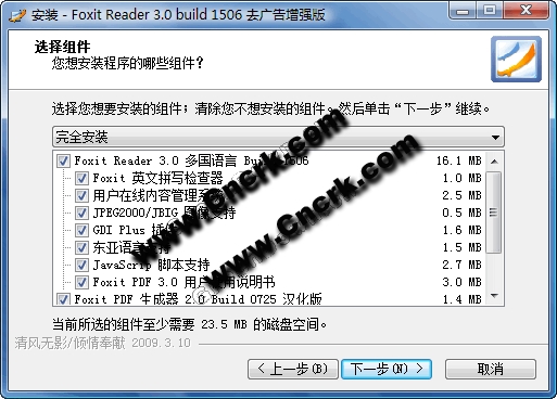 基于 Foxit Reader Pro 3.0 Build 1817 官方英文版制作,外挂 简体中文 和 繁体中文 语言文件;集成了必需的插件,关闭了自动更新,去除了 Foxit Reader Pro 阅读窗上的广告,界面更简洁清爽,默认使用简体中文界面,简体中文用户毋需额外设置;安装结束时自动关联 PDF 格式文件,安装后就是注册版(非),没有任何功能限制。