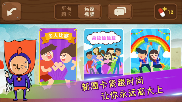 游戏的词语类型很丰富,大杂烩、合家欢、演技王、娱乐八卦、体育迷……等等共有20多个类型的题卡,其中有个「情投意合」题卡,如果想与心目中的她/他增进下感情,在大家的欢笑声中选择这个题卡相信会有立竿见影的效果的。