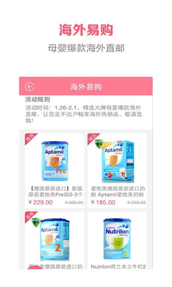 红孩子,专业、值得信赖的母婴商城!特点一:价格优势。在红孩子特卖手机客户端上,每天都会有“9点开抢”、“聚实惠”、“客户端专享”、“海外易购”等超值活动,价格更加实惠!