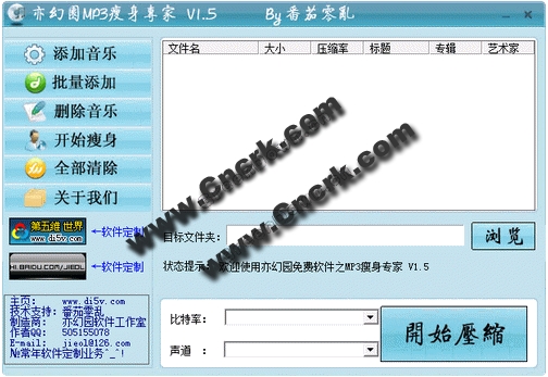 亦幻园MP3瘦身精灵 V1.5 简体中文绿色免费版 本软件为mp3压缩软件,可以调整MP3的“品质”(位速/比特率,就是Kbps)通过转换品质,来起到压缩MP3文件体积的作用,软件提供了多种固定规格的品质,比如:CD品质(128Kbps)、FM广播品质(96Kbps)、电话品质(16Kbps)等等,让您在不了解专业的音频设置情况下也能转换
