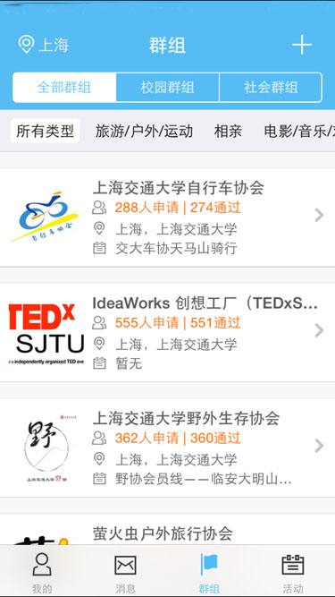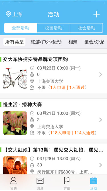 随时随地查看自己学校、所在的区域最新的活动