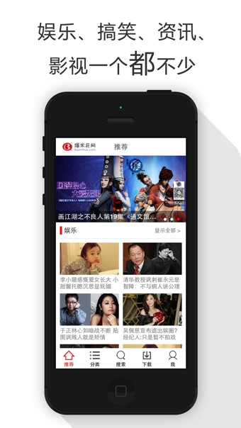 爆米花视频,是爆米花网旗下的移动视频终端,以爆米花网海量视频资源为基础,汇集搞笑、微电影、热点、娱乐、影视、养生、广场舞等内容为一体,全力打造年度最好看,最好玩的移动视频APP。