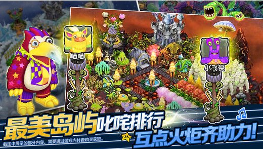 除了养活小怪兽之外,为它们打造美丽的栖息之地也是你的职责所在,随着游戏的深入,不断升级,大家可以到商店系统里购买装饰物、建筑、岛屿等元素,来装扮小怪兽们的家园。