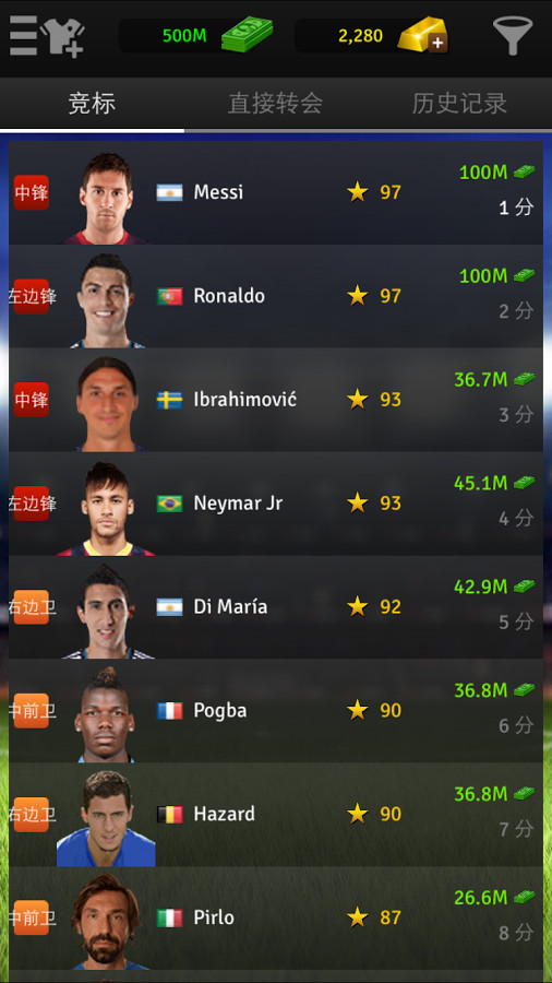 对待每场比赛都全力以赴,以便完成赛季初设定的目标。赢得联赛、冠军联赛和黄金足球经理杯赛。一个赛季包揽三大杯的足球经理凤毛麟角,你有这个能力吗?如果你能做到,就会成为朋友羡慕的顶级足球经理!你的奖杯堂就会名存史册,你也能和其他人分享你的荣耀。