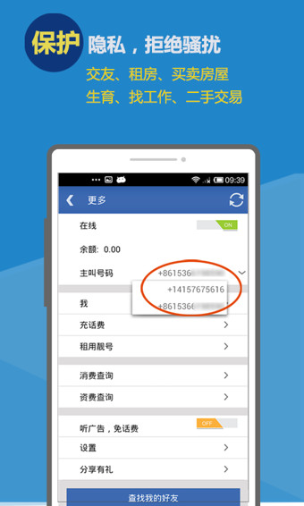 4.轻松实现一机多号,让您拥有一个全新真实号码!交友、租房、买卖房屋、医疗、生育、二手交易、找工作、打车、与朋友嬉闹、调研、查岗等场景,保护真实号码,杜绝骚扰,绝对安全。