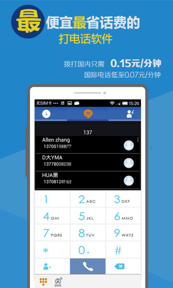 5.国际电话比有信/阿里通电话/触宝电话/skype更省钱,比阿里小号更方便。