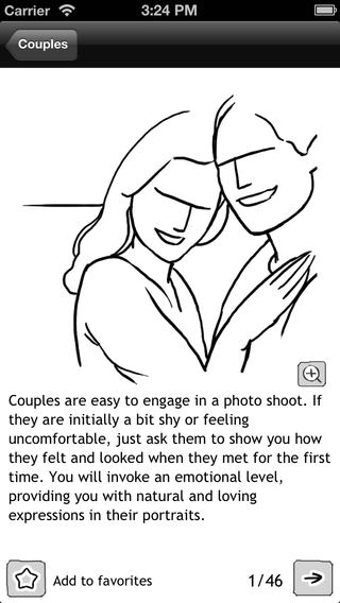 posing安卓版有各种各样的姿势:儿童、一对、肖像、女性、男性、合照以及婚姻。共有410姿势,在各种各样场景它们提供的选择很广泛。翻看姿势时,使用“增加至我的最爱”功能为拍照时快使用。【更新日志】