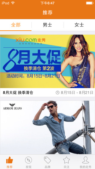 走秀网Android客户端是走秀网推出的移动购物应用,每天和网站同步为消费者提供最实惠的促销商品,女装、男装、鞋靴、配饰、运动、化妆品、包包、奢侈品、手表等上千款精品,只卖让你疯狂的价格。