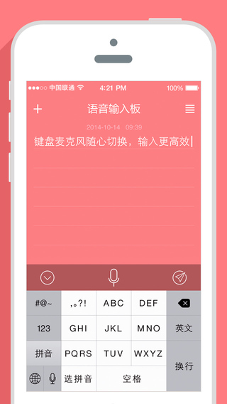 史上最酷,最快,最准的中文语音输入板,带来完全不同的中文语音输入体验。瞬间把“语音”变成“文字”,这就是高科技!