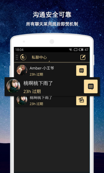 -不管是文字、语音还是照片,所有对话阅后即焚,倾诉秘密无负担。