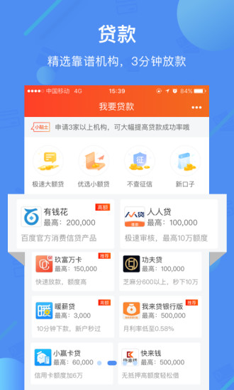 4、新增贷款还信用卡功能,轻松便捷通过认证授信得到额度发起借款到信用卡