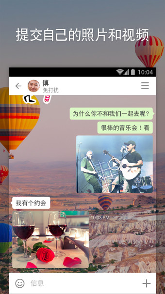 使用ICQ Messenger跟朋友分享您的照片和视频,发送多媒体消息。比多媒体短信服务(MMS)好多了——ICQ Messenger的照片和视频信息就在聊天窗口中免费发送。