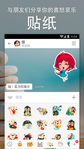 当语言不足以表达,发送有趣的贴纸、笑脸符号和表情符号吧。分享您的心情和感情,与您的朋友分享快乐——贴纸、笑脸符号和表情符号能让所有聊天变得更轻松。
