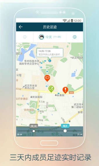 可记录自己或是好友三天内的位置信息并形成足迹地图。
