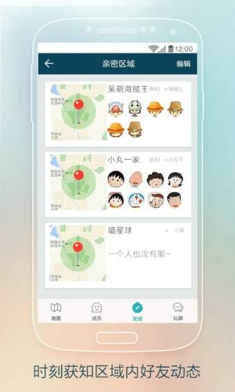 亲密区域:好友进出亲密区域时,圈子中的其他成员将会收到提醒。