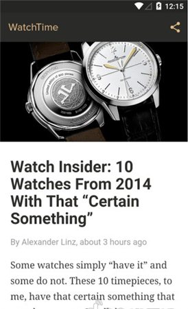 手表城市瞄准的是手表中的奢侈品,而非安卓穿戴设备中的那些表。这个应用是由Digg的联合创始人之一开发的,功底自然不错。