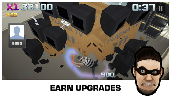 卡通打造 欧美街头风游戏画面极具欧美的街头风格,由于游戏玩法需要,所以采用俯瞰的视角体验来观看全场,这样才能更加清晰的了解商场的地理位置。故事发生在一个拥有琳琅满目商品的超市,主角虽然我们只能看见他的头顶,但也难以掩盖他那壮硕的身材,手举棒球棍的他,看起来十分愤怒,货品或者货架四处被击打的四处散落时的特效,做的非常到位。