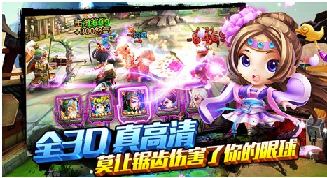 此外,游戏中的Q版二头身萌趣十足,细节之处恶搞不断。《唱吧三国》采用了非常卡通的Q版画面,游戏人物采用了2头身的形象,十分可爱,典韦、吕布、张飞等赫赫有名的武将在这种画风的反衬下显得萌趣十足,场景塑造逼真,人物表情也非常丰富,有着不同夸张的表情特效,令人捧腹,不得不佩服游戏研发团队的搞笑功力。