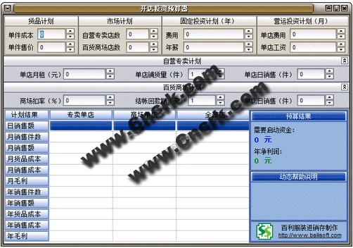 开店投资预算器是一款利用经济学中边际成本原理,对固定投资下的网点扩张开店,进行投资预算,及获利分析的计算工具。尤其适合专卖店与商场双重模式下的时尚零售分销行业的运用 。