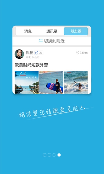 鸽信 v1.0.0 安卓版 鸽信app下载,这是一款综合性的购物平台。在这里为用户提供最便捷、最舒心、最优质的服务,并自带社交功能,可以实现好友间的即时聊天和信息发布。