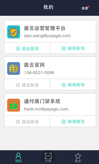 1、我的账号:新加登录时间、消息记录2、安全:新加设备管理、查看设备号、修改设备名