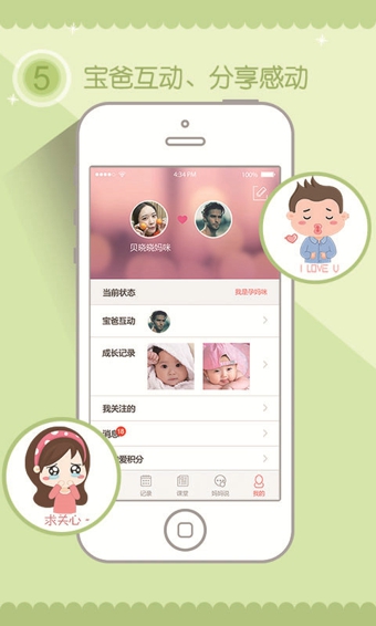 宝爸宝妈都可注册,打造温馨的线上家庭氛围,并给予宝爸宝妈一样的育儿呵护指导,为宝宝创造更好的成 长空间;