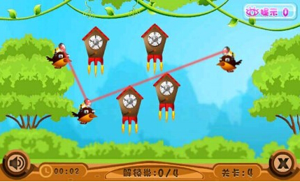 1、玩家需要挪动鸟儿让红色激光线连接屏幕上所有鸟笼的锁芯就可以救出幼鸟了。