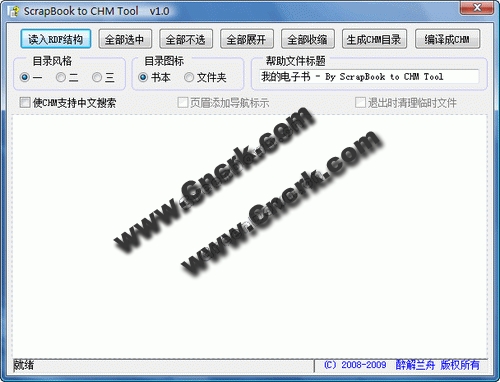 (可通过将 ScrapBook 数据保存目录的 scrapbook.rdf 文件拖放到ScrapBookToCHMTool.exe图标上打开,