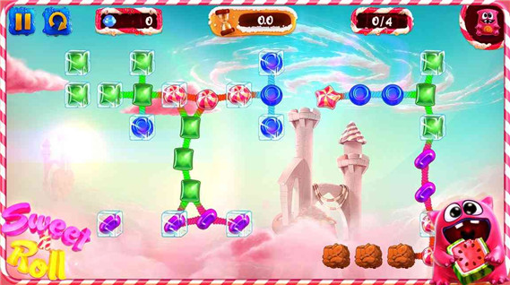 《糖果怪兽》是一款类似于《割绳子2》的休闲益智小游戏。整个游戏的画面色彩明亮明显,玩家将会置身于一个糖果的童话世界,玩法也类似割绳子,用点击组合消除糖果的方式,给游戏里的小怪物吃到糖果即可,十分容易上手。游戏画面缤纷梦幻,色彩鲜艳多变,让人仿佛置身于卡通梦幻的王国。每个关卡都布满了色彩斑斓,造型可爱的诱人糖果,主角皮特是一只红色的小怪兽,一双大眼古灵精怪的盯着你。同时也是能够注意到画面的上方可以点击消除的分数、用时和需要获得的糖果数量。所以只有让小怪物吃到足够的糖果才能过关,同时时间越少、分数越高越好,最高是三星过关。