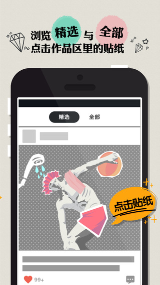 全球趣味贴纸作品在你的首页流动,就差你来点赞、评论