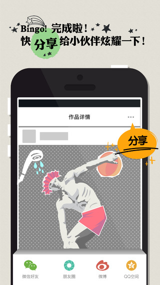 我们只需要用一个简单的贴纸将我们有趣的生活瞬间与世界做连接,对你的照片赋予趣味化的裁剪,附带上简短的链接。与家人和朋友共享将乏味生活焕发出崭新趣味的过程。