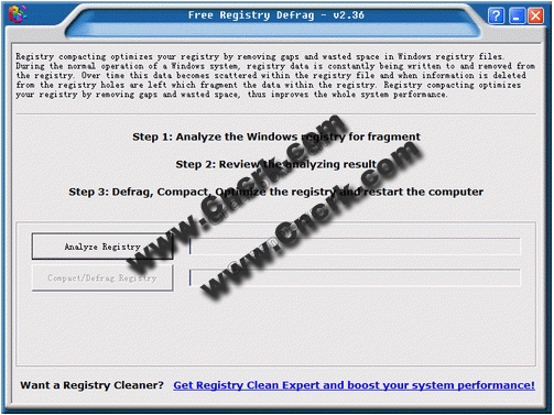 Free Registry Defrag 是一款扫描和通过清除间隙和浪费空间来优化你的注册表,从而有助于改善系统性能的简单工具.如果你在扫描结果之后选择重新整理你的注册表,需要做好重新启动计算机的准备.
