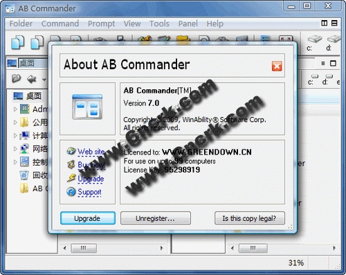 AB Commander V7.32 英文绿色特别版 AB Commander 是一个可以替代Windows资源管理器的多窗口文件管理器。使用它可以在两个并排的窗口中同时对两个不同的文件夹进行快速有效的操作。AB Commander 提供了丰富的文件管理工具,比如命令行,命令和过滤,比较和文件夹内容同步等。同时还内置了功能强大的快速文本编辑器,图像浏览器等等,可以有效的提高文件管理效率。AB Commander 容易使用,其操作方法与Windows资源管理器和Total Commander等基本一致。
