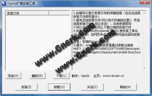 opera的自定义功能非常强大,可扩展性十分好,对于高手来说,添加按钮,菜单,javascript等小菜一碟,高手也乐此不疲。但许多新手确为此费尽脑筋。 本工具可以通过选择安装文件,点击安装即可一步完成扩展