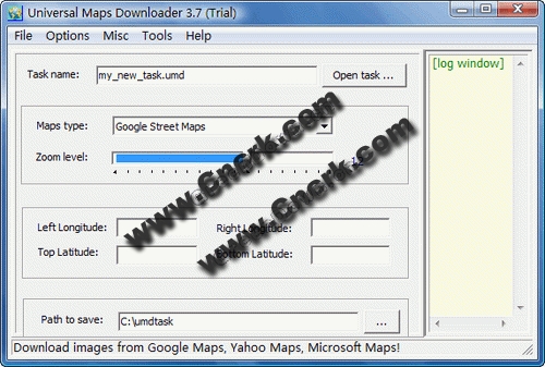 Universal Maps Downloader是一款可以从Google Maps,Yahoo Maps,Microsoft Maps上下载卫星地图的工具。所有下载的地图保存在硬盘上。你可以使用它提供的工具进行浏览或者合并成一个BMP图像。可以根据用户设定的经纬度范围下载图片。下载的小图片可以保存,然后可以利用它的拼图功能拼成一张大的卫星地图!支持多线程。使用时候建议不要设定范围太大,也不要设置线程数目过多
