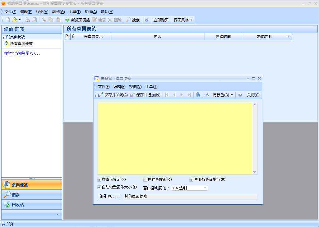 您可以根据您的喜好与习惯,对效能桌面便笺进行个性化设置。