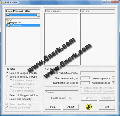 PixRenamer V2.0 英文绿色特别版 PixRenamer 是一款被设计用于在一个文件夹内部重命名照片文件并且为其提供更有意义的名称,替代通常由数码相机生成的序号文件名称的简单的图像重命名工具。你可以使用你所选择的文件名替换原来的文件名并且可以有选择地使用增量序号作为文件名(比如休假-001.jpg),预览新的文件名,然后使用点击一个按钮的方式重命名该文件