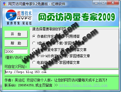 网页访问量专家 V2.0 简体中文绿色免费版 让您的网页(网站主页、博客、论坛文章、日志)每天拥有成千上百万的访问量,使您的网页排行榜首,从而提高您的网页知名度。(绿色免费软件,容量超小,无需安装,直接使用;经测试比较,本软件是目前一款真正实现最快提高网页访问量的理想软件!)