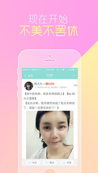 5、社交:有共同的变美目标,加入整形圈子,来扒扒整形那点事儿,一起变美!